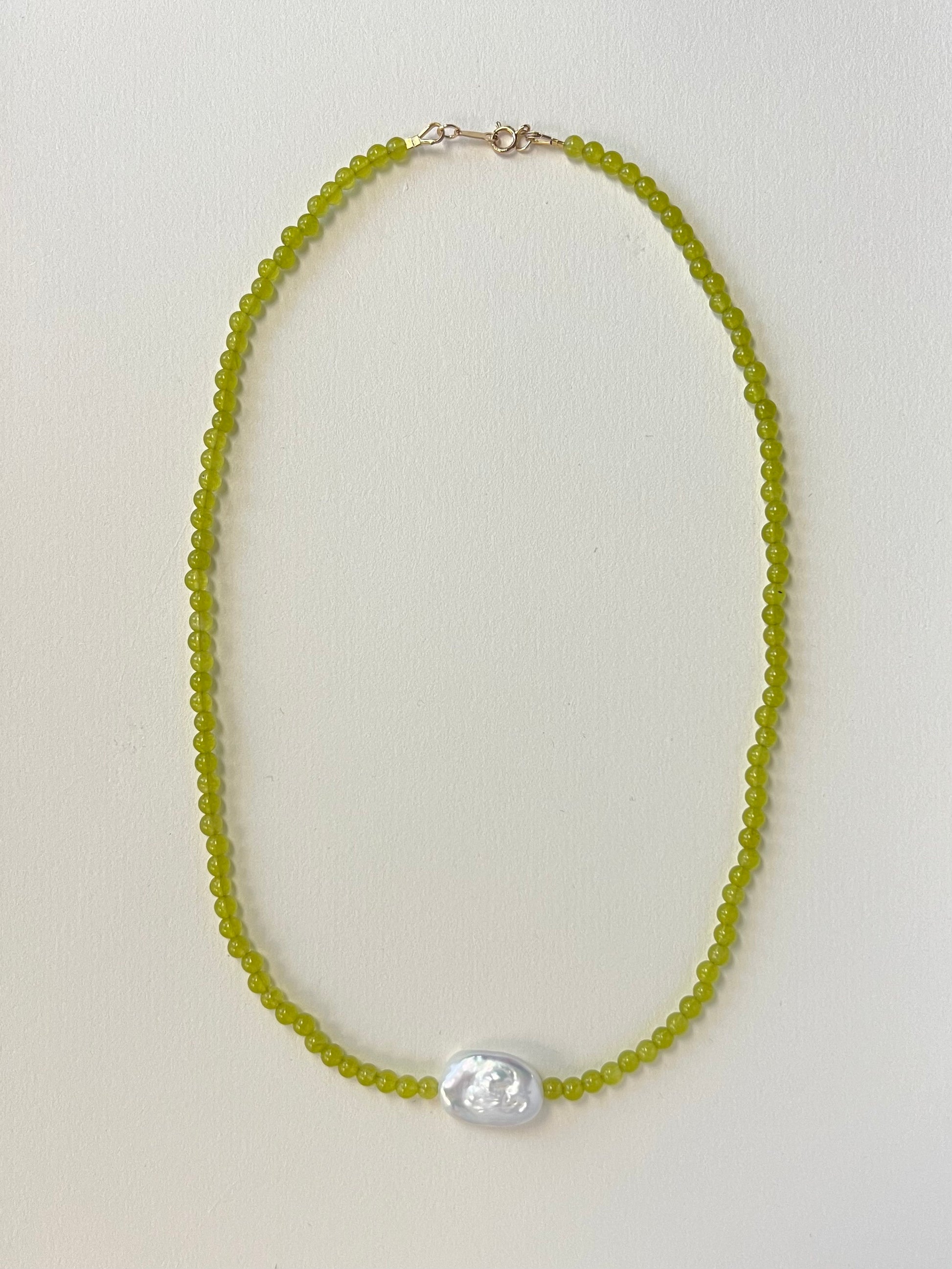 Verdant pairs olive green natural stones with a natural freshwater pearl for a look that feels alive and effortless.